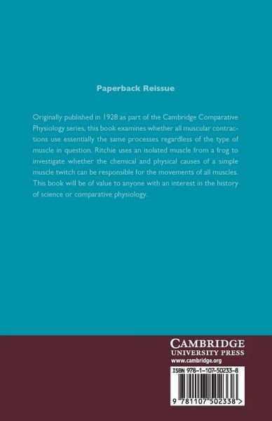 Originally published in 1928 as part of the Cambridge Comparative Physiology series, this book examines whether all muscular contractions use essentially the same processes regardless of the type of muscle in question. Ritchie uses an isolated muscle from a frog to investigate whether the chemical and physical causes of a simple muscle twitch can be responsible for the movements of all muscles. This book will be of value to anyone with an interest in the history of science or comparative physiology.