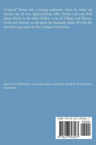 Corporal Terrian has a jarring realization when he wakes up aboard one of two, lightyear-long Arc vessels, and can't find planet Earth in the ether. Follow a cast of Villains and Heroes, Gods, and Mortals, as the quest for humanity kicks off with the first three part series in 'The Compass Chronicles'. Complete with auditory enhancements and mind bending dilation of thought, The Compass Chronicles will leave you thirsting for task completion.