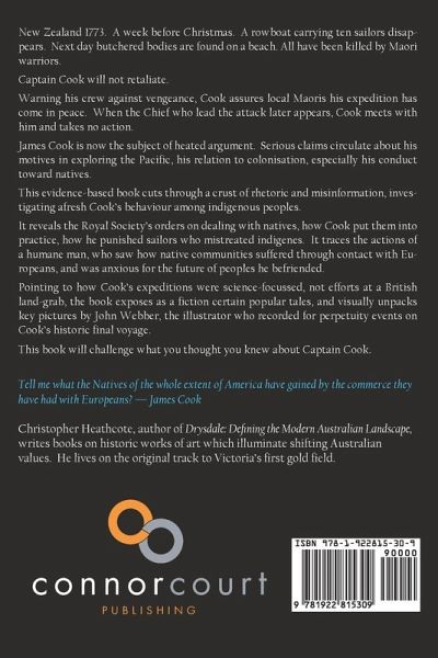 New Zealand 1773. A week before Christmas. A rowboat carrying ten sailors disappears. Next day butchered bodies are found on a beach. All have been killed by Maori warriors. Captain Cook will not retaliate. Warning his crew against vengeance, Cook assures local Maoris his expedition has come in peace. When the Chief who lead the attack later appears, Cook meets with him and takes no action. James Cook is now the subject of heated argument. Serious claims circulate about his motives in exploring the Pacific, his relation to colonisation, especially his conduct toward natives. This evidence-based book cuts through a crust of rhetoric and misinformation, investigating afresh Cook's behaviour among indigenous peoples. It reveals the Royal Society's orders on dealing with natives, how Cook put them into practice, how he punished sailors who mistreated indigenes. It traces the actions of a humane man, who saw how native communities suffered through contact with Europeans, and was anxious for the future of peoples he befriended. Pointing to how Cook's expeditions were science-focussed, not efforts at a British land-grab, the book exposes as a fiction certain popular tales, and visually unpacks key pictures by John Webber, the illustrator who recorded for perpetuity events on Cook's historic final voyage. This book will challenge what you thought you knew about Captain Cook. Tell me what the Natives of the whole extent of America have gained by the commerce they have had with Europeans? - James Cook Christopher Heathcote, author of Drysdale: Defining the Modern Australian Landscape, writes books on historic works of art which illuminate shifting Australian values. He lives on the original track to Victoria's first gold field.