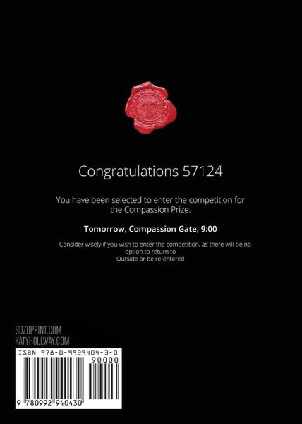 Fiction - dystopian for young adults/adults. Luca leaves the poverty of Outside and enters affluent Tropolis in the hope of winning the Compassion Prize. With the help of friends Mercy and Eban, he discovers that true compassion cannot be won.
