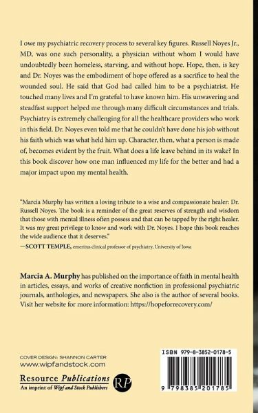 I owe my psychiatric recovery process to several key figures. Russell Noyes Jr., MD, was one such personality, a physician without whom I would have undoubtedly been homeless, starving, and without hope. Hope, then, is key and Dr. Noyes was the embodiment of hope offered as a sacrifice to heal the wounded soul. He said that God had called him to be a psychiatrist. He touched many lives and I'm grateful to have known him. His unwavering and steadfast support helped me through many difficult circumstances and trials. Psychiatry is extremely challenging for all the healthcare providers who work in this field. Dr. Noyes even told me that he couldn't have done his job without his faith which was what held him up. Character, then, what a person is made of, becomes evident by the fruit. What does a life leave behind in its wake? In this book discover how one man influenced my life for the better and had a major impact upon my mental health.