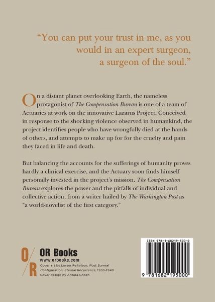 ?I have created for each of you a fate, one tailored specifically for your needs and desires. Each of you has a defining moment?not before, not after?when a wrong turn or decision led to the disastrous outcome that you and I mourn. To isolate that malignant moment is an exacting, exhaustive process, which only the most well-trained and competent professionals, armed with the most sophisticated of predictive models and processing power, can accomplish. You can put your trust in me, as you would in an expert surgeon, a surgeon of the soul.? On a distant planet overlooking Earth, the nameless protagonist of The Compensation Bureau is one of a team of Actuaries at work on the innovative Lazarus Project. Conceived in response to the shocking violence observed in humankind, the project identifies people who have wrongfully died at the hands of others?whether victims of war, hate crimes, or random brutality?and attempts to compensate for the cruelty and pain they faced in life and death. But balancing the accounts for the sufferings and wrongdoings of humanity proves hardly a clinical exercise. The Actuary soon finds himself personally invested in the project's mission, and the goals of the project itself are complicated as the fate of Earth's inhabitants becomes more uncertain. The Compensation Bureau explores the power of individual and collective action, from a writer hailed by The Washington Post as ?a world-novelist of the first category.?