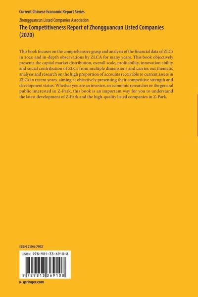 This book focuses on the comprehensive grasp and analysis of the financial data of ZLCs in 2020 and in-depth observations by ZLCA for many years. This book objectively presents the capital market distribution, overall scale, profitability, innovation ability and social contribution of ZLCs from multiple dimensions and carries out thematic analysis and research on the high proportion of accounts receivable to current assets in ZLCs in recent years, aiming at objectively presenting their competitive strength and development status. Whether you are an investor, an economic researcher or the general public interested in Z-Park, this book is an important way for you to understand the latest development of Z-Park and the high-quality listed companies in Z-Park.