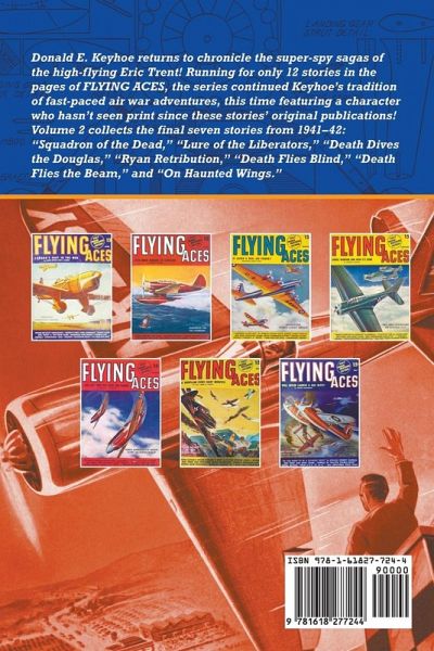 Donald E. Keyhoe returns to chronicle the super-spy sagas of the high-flying Eric Trent! Running for only 12 stories in the pages of Flying Aces, the series continued Keyhoe's tradition of fast-paced air war adventures, this time featuring a character who hasn't seen print since these stories' original publications! Volume 2 collects the final seven stories from 1941-42: "Squadron of the Dead," "Lure of the Liberators," "Death Dives the Douglas," "Ryan Retribution," "Death Flies Blind," "Death Flies the Beam," and "On Haunted Wings."