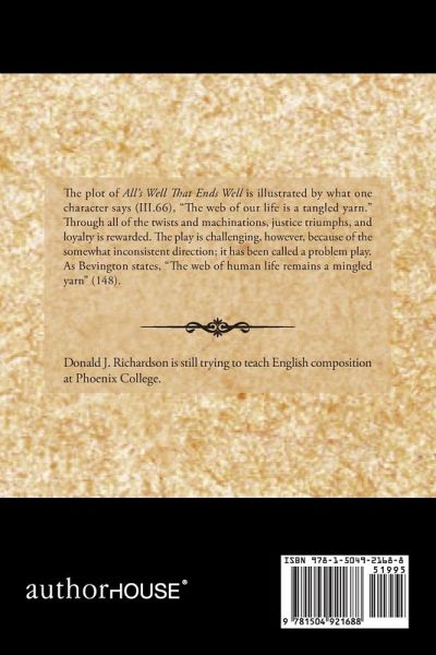 The plot of All's Well That Ends Well is illustrated by what one character says (III.66), "The web of our life is a tangled yarn." Through all of the twists and machinations, justice triumphs, and loyalty is rewarded. The play is challenging, however, because of the somewhat inconsistent direction; it has been called a problem play. As Bevington states, "The web of human life remains a mingled yarn" (148).