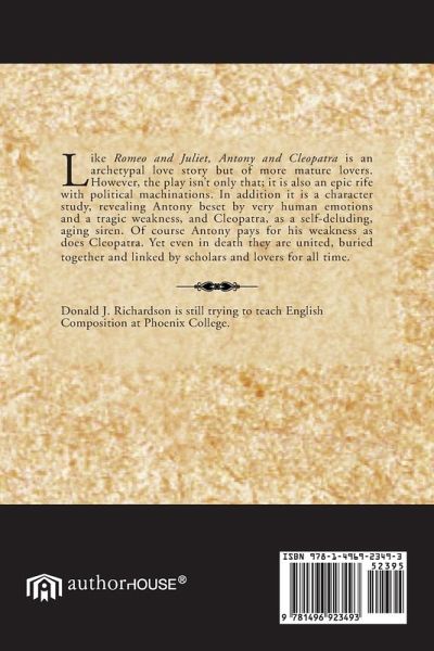 Like Romeo and Juliet, Antony and Cleopatra is an archetypal love story but of more mature lovers. However, the play isn’t only that; it is also an epic rife with political machinations. In addition it is a character study, revealing Antony beset by very human emotions and a tragic weakness, and Cleopatra, as a self-deluding, aging siren. Of course Antony pays for his weakness as does Cleopatra. Yet even in death they are united, buried together andlinked by scholars and lovers for all time.