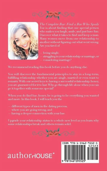 The Complete Bae: Find a Bae Who Spoils You is about finding that one special person who makes you laugh, smile, and just have fun. Discover what it takes to find and keep a man. Many women move from one relationship to another without figuring out what went wrong. Are you tired of being single, struggling in your relationship or marriage, or considering marriage? We recommend reading this book before you do anything else. You will discover the fundamental principles to stay in a long-term, fulfilling relationship whether you are single, married or even want to remarry. With our secret keys to having a successful relationship, honey, you are guaranteed for it to last. Why go through life alone when you can go it together with someone special? When you do find bae, honey, he is going to be everything you wanted and more. In this book, I will teach you the different types of men in the dating process, where you are going wrong, and having a deeper connection with your bae. Upgrade your relationship status to a whole new level as you learn why some relationships break and others remain solid.