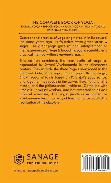 Concept and practice of yoga originated in India several thousand years ago. Its founders were great saints & sages. The great yogis gave rational interpretation to their experience of Yoga & brought about a scientific and practical method within everyone's reach. This edition combines the four paths of yoga as expounded by Swami Vivekananda in the nineteenth century. They include the three Yoga's mentioned in the Bhagwat Gita, Raja yoga, Jnana yoga, Karma yoga, Bhakti yoga, which is based on Patanjali's yoga sutras, and together they speak to the active, the emotional, the mystic, and the philosophical inside us. Complete with timeless universal wisdom, and not restricted to as and physical exercises, The yogic practices explained by Vivekananda become a way of life and hence lead to the realisation of the absolute.