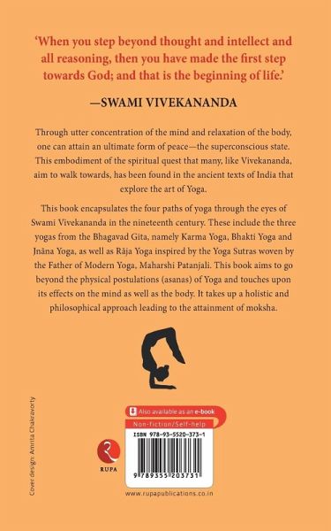 'When you step beyond thought and intellect and all reasoning, then you have made the first step towards God; and that is the beginning of life.' -Swami Vivekananda Through utter concentration of the mind and relaxation of the body, one can attain an Ultimate form of peace-the superconscious state. This embodiment of the spiritual quest that many, like Vivekananda, aim to walk towards, has been found in the ancient texts of India that explore the art of Yoga. This book encapsulates the four paths of yoga through the eyes of Swami Vivekananda in the nineteenth century. These include the three Yogas from the Bhagvad Gita, namely Karma Yoga, Bhakti Yoga and Jnana Yoga, as well as Raja Yoga, inspired by the Yoga Sutras woven by the Father of Modern Yoga, Maharshi Patanjali. The book aims to go beyond the physical postulations (asanas) of Yoga and touches upon its effects on the mind as well as the body; it takes up a holistic and philosophical approach leading to the attainment of moksha.