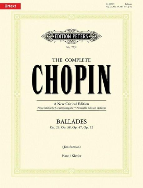 This Urtext critical edition of Chopin's Ballades, edited by Jim Samson, was honoured with the International Piano Awards 2009 in the category Edition. Composed between 1831 and 1842, Chopin's four Ballades are among the most important works in the Romantic piano literature. The Complete Chopin - A New Critical Edition series is recognised as the definitive scholarly edition of Chopin's music. Under the direction of editor-in-chief John Rink, a team of some of the world's most respected Chopin specialists contribute their unrivalled collective knowledge to imbue the project with unique authority, drawing upon the latest international scholarship. The Complete Chopin prioritises the needs of the practical pianist and provides a text of each work based on a single principal source together with important variants from other authoritative sources, along with thorough critical commentaries and prefatory essays in English, French and German. Diese Urtext-Ausgabe von Chopins Balladen, herausgegeben von Jim Samson, wurde 2009 mit dem International Piano Award in der Kategorie "Edition" ausgezeichnet. Entstanden zwischen 1831 und 1842, gehören Chopins vier Balladen zu den bedeutendsten Werken der romantischen Klavierliteratur. Die Reihe The Complete Chopin - A New Critical Edition gilt als die bedeutendste wissenschaftliche Gesamtausgabe von Chopins uvre. Unter der Leitung des Herausgebers John Rink verleiht ein Team international führender Chopin-Spezialisten dem Projekt eine einzigartige Autorität, die auf den neuesten internationalen Forschungen basiert. The Complete Chopin orientiert sich an den Bedürfnissen praktischer Musikerinnen und Musiker und bietet den Notentext jeder Komposition auf Grundlage einer Hauptquelle, ergänzt um wichtige Varianten aus anderen autoritativen Quellen sowie ausführliche kritische Kommentare und Einleitungen in englischer, französischer und deutscher Sprache.