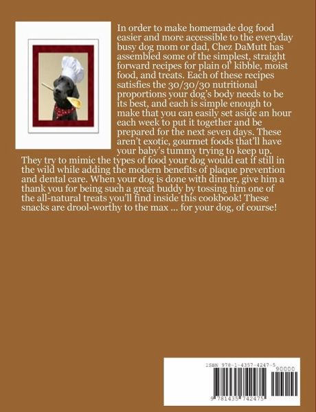 In order to make homemade dog food easier and more accessible to the everyday busy dog mom or dad, Chez DaMutt has assembled some of the simplest, straightforward recipes for plain ol' kibble, moist food, and treats. Each of these recipes satisfies the 30/30/30 nutritional proportions your dog's body needs to be its best, and each is simple enough to make that you can easily set aside an hour each week to put it together and be prepared for the next seven days. These aren't exotic, gourmet foods that'll have your baby's tummy trying to keep up. They try to mimic the types of food your dog would eat if still in the wild while adding the modern benefits of plaque prevention and dental care. Eat Healthy!