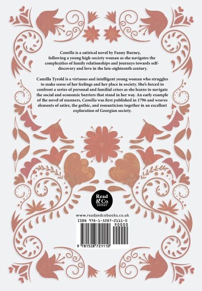 Camilla is a satirical novel by Fanny Burney, following a young high-society woman as she navigates the complexities of family relationships and journeys towards self-discovery and love in the late-eighteenth century. Camilla Tyrold is a virtuous and intelligent young woman who struggles to make sense of her feelings and her place in society. She's forced to confront a series of personal and familial crises as she learns to navigate the social and economic barriers that stand in her way. An early example of the novel of manners, Camilla was first published in 1796 and weaves elements of satire, the gothic, and romanticism together in an excellent exploration of Georgian society. Read & Co. Classics is proudly republishing this volume, written by Queen Charlotte's Keeper of the Robes, Fanny Burney. This new edition features a letter to the queen consort under the author's nom de plume, Madame D'Arblay, presenting the novel to Her Majesty.