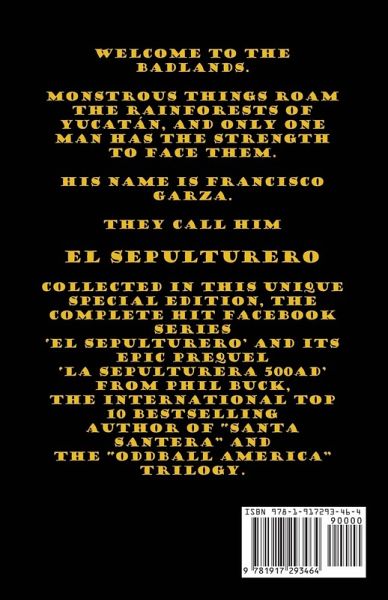 Welcome to The Badlands. Monstrous things roam the rainforest of Yucatán, and only one man has the strength to face them. His name is Francisco Garza. They call him EL SEPULTURERO Collected in this unique Special Edition, the complete hit Facebook series 'El Sepulturero' and its epic prequel 'La Sepulturera 500AD' from Phil Buck, the international top 10 bestselling author of "Santa Santera" and the "Oddball America" trilogy.