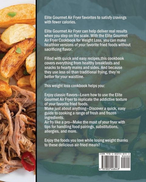 Elite Gourmet Air Fryer favorites to satisfy cravings with fewer calories. Elite Gourmet Air Fryer can help deliver real results when you step on the scale. With the Elite Gourmet Air Fryer Cookbook for Weight Loss, you can make healthier versions of your favorite fried foods without sacrificing flavor. Filled with quick and easy recipes,this cookbook covers everything from healthy breakfasts and snacks to hearty mains and sides. And because they use less oil than traditional frying, they're better for your waistline. This weight loss cookbook helps you: Enjoy classic flavors¿Learn how to use the Elite Gourmet Air Fryer to replicate the addictive texture of your favorite fried foods. Make just about anything¿Discover a quick, easy guide to cooking a range of fresh and frozen ingredients. Air fry like a pröMake the most of your fryer with tips for handling food pairings, substitutions, allergies, and more. Enjoy the foods you love while losing weight thanks to these delicious air-fried meals!