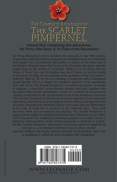 Volume four containing two adventures: 'Sir Percy Hits Back' & 'A Child of the Revolution' Sir Percy Blakeney is not to be taken too seriously. In late 18th century England he is little more than a man given to trivial pleasures, an aristocratic and wealthy fop, unconcerned with politics or events on the other side of the English Channel where the France of the Bourbons has been violently swept away by the zealots of revolution. What is it to Sir Percy that the 'Reign of Terror' has cast its shadow over all of France, or that the heads of innocents fall daily into the baskets of the guillotines of the Convention? Nothing? Well no, for Sir Percy is leading a double life with a dangerous secret identity. He is in reality the complete opposite of his apparently 'true' self. He is 'The Scarlet Pimpernel', an expert swordsman, a master of disguise, a dare-devil, quick-thinking escape artist and, together with his band of like-minded adventurers, a man on a mission to rescue those unjustly condemned to die. So successful is he in this endeavour that soon 'The Scarlet Pimpernel' is famous as an heroic defender of the weak and oppressed, and notorious as an opponent of the officers and agents of the revolution (including the dastardly Citizen Chauvelin) who are determined, at all costs, to bring him to account on the 'national razor'. They seek him here, there and everywhere but catching 'The Scarlet Pimpernel' is quite another matter! In creating this fictional hero, Baroness Orczy (1865-1947) has given her readership a thrilling character in a unique series of historical, action-packed romps whose popularity is destined to endure. All the 'Scarlet Pimpernel' adventures have been gathered together by Leonaur in a coordinated collection of good value volumes. Leonaur editions are newly typeset and are not facsimiles; each title is available in softcover and hardback with dustjacket.