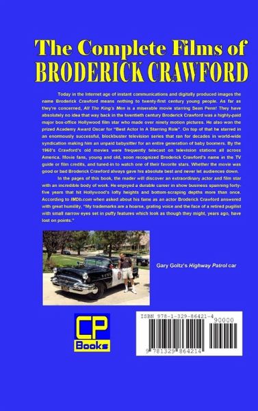 Today the name Broderick Crawford means nothing to twenty-first century young people. As far as they're concerned, All The King's Men is a miserable movie starring Sean Penn! They have absolutely no idea that way back in the twentieth century Broderick Crawford was a highly-paid major box-office Hollywood film star who made over ninety motion pictures. He also won the prized Academy Award Oscar for "Best Actor In A Starring Role". On top of that he starred in an enormously successful, blockbuster television series that ran for decades in world-wide syndication making him an unpaid babysitter for an entire generation of baby boomers. In the pages of this book, the reader will discover an extraordinary actor and film star with an incredible body of work. He enjoyed a durable career in show business spanning forty-five years that hit Hollywood's lofty heights and bottom-scraping depths more than once.