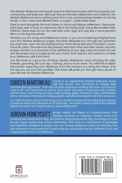 A revolutionary new look into everything "Malamute"; a MUST-READ that includes practical tips, tricks, and insights to help a new (or seasoned) Alaskan Malamute owner. Using interviews with 8 top Alaskan Malamute breeders, authors Jordan Honeycutt and Coreen Martineau have created an in-depth look at what it REALLY takes to successfully live with, raise, and train an Alaskan Malamute. Covering all the Malamute-specific topics you NEED TO KNOW, such as:The unique characteristics and quirks of the Alaskan Malamute breed Early training (including housebreaking) strategies for Alaskan Malamutes Choosing the proper supplies and food for a Malamute puppy Helpful strategies for socializing an Alaskan Malamute with other dogs Health care advice for each stage of your Alaskan Malamutes life Grooming tips that a Malamute owner needs to know! For a new Malamute owner, trying to find, raise and train your dog all by yourself is often a scary and daunting process. However, with the right knowledge, owning this wonderful breed can be one of the most rewarding experiences of your life. That's where we come in. In "The Complete Guide to Alaskan Malamutes" you'll learn everything from finding the right breeder, preparing your family and home, what to expect in the first days and weeks with your new Malamute, to handling housebreaking and training your new puppy. This guide also covers Malamute health care, grooming, training, behavior problems, and how to properly socialize your Malamute. It's all here within these pages. This book answers all the most common questions (and many you didn't even know to ask!) a new Malamute owner will face. Such as:How do I find a good breeder and what sort of questions should I ask them? How do I pick the perfect Malamute for my lifestyle out of the litter? How do I prevent my Malamute from constantly pulling during walks? How do I best handle correcting my dogs behaviors? Why does my Malamute sometimes growl and how do I stop it from happening? How do I get my Malamute used to being around other dogs? How do I exercise my Malamute enough to prevent them from becoming bored and destructive? This detailed and comprehensive guide to Alaskan Malamutes will walk you safely and step-by-step through the trials and tribulations of the first-time Malamute owner. By the end you will have a happy, healthy, polite and well-mannered dog that you can be proud to call yours, and who will bring countless joys and unwavering love, loyalty and devotion into your life. If you are considering bringing an Alaskan Malamute into your home (or already have!) then you need to read this book as soon as possible!