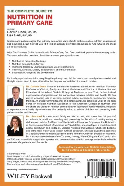 THE COMPLETE GUIDE TO NUTRITION IN PRIMARY CARE EDITED BY Darwin Deen, MD, MS Lisa Hark, PhD, RD linicians and patients agree that primary care office visits should include routine nutrition assessment and counseling. But how do you fit it into an already crowded consultation? And what is the most up-to-date advice? With The Complete Guide to Nutrition in Primary Care, Drs. Deen and Hark provide the necessary tools. This comprehensive overview of nutrition answers your questions on: * Nutrition as Preventive Medicine * Nutrition through the Lifecycle * Improving Health by Changing Diet and Lifestyle Behaviors * Vitamins, Minerals, Dietary Supplements, and the Alternative * Successful Changes to the Environment his timely paperback contains everything the primary care clinician needs to counsel patients on diet and lifestyle issues. Keep it close at hand for the frequent consultation it is sure to receive.