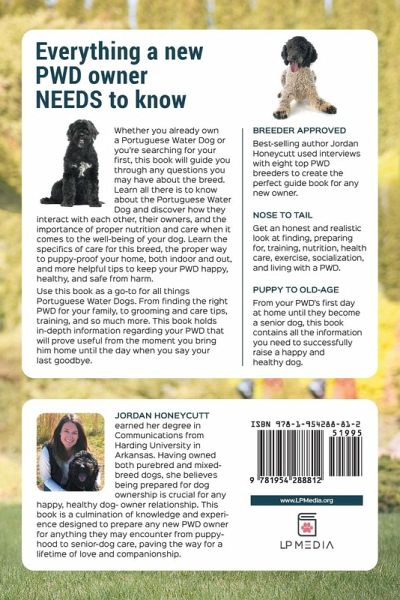 A revolutionary new look into everything "Portie"; a MUST-READ that includes practical tips, tricks, and insights to help a new (or veteran) Portuguese Water Dog owner. Author Jordan Honeycutt used interviews with EIGHT top PWD breeders to create an in-depth look at what it REALLY takes to successfully live with, raise, and care for a Portuguese Water Dog. "The PWD is an active, energetic, intelligent breed. They require daily exercise, such as long walks, playing Frisbee or fetch, hiking, or swimming. Mental stimulation in the form of training is very important in the first year. This breed has a true need to be an active member of the family. The PWD does not thrive in a home that is sedentary. A family that leads an active lifestyle and enjoys having their dog tag along makes the best PWD home." Jill Roudebush-Maritimo Portuguese Water Dogs Covering all the PWD-specific topics you NEED TO KNOW, such as:PWD History: Learn about the origins of the Portuguese Water Dog. Witness the evolution of this extraordinary breed, from its rich past that traces back to the shores of Portugal. Originally bred as versatile working dogs by fishermen, these skilled companions navigated the high seas, diving fearlessly into turbulent waters to retrieve nets and even messages between ships. Choosing a PWD: When selecting the perfect Portuguese Water Dog for your family, consider their energy level and compatibility with your lifestyle. Whether you choose to adopt from a shelter or work with a reputable breeder, ensure that the dog's temperament and needs align with your family's dynamics and activity level for a harmonious and fulfilling companionship. Prepare for Adventure: Welcoming a PWD into your home involves creating a safe environment both indoors and outdoors, as these dogs are known for their love of water and energetic nature. Securely fence your yard and remove any hazardous objects, while also considering water safety measures. Indoors, be sure to puppy-proof your home by keeping valuable items out of reach and providing interactive toys to channel their energy, ensuring a smooth transition for both your family and the adventurous water-loving pup. The Arrival: In the first few weeks with a Portuguese Water Dog puppy, be prepared for their high energy levels, intelligence, and desire for social interaction. Engage them in stimulating activities, provide consistent training, and establish a routine to keep them mentally and physically engaged, fostering a strong bond and a well-behaved companion. Successful Training: When training a PWD puppy, leverage their intelligence, willingness to please, and natural affinity for water-related activities. Utilize positive reinforcement techniques, such as rewards and praise, and keep training sessions fun and engaging. Be consistent and patient, as this breed may exhibit a stubborn streak at times, requiring firm but gentle guidance to achieve desired results. Make Potty Training Simple: To successfully potty train a PWD puppy, emphasize positive reinforcement by rewarding them with treats, praise, and playtime when they eliminate in the appropriate spot. Avoid using negative reinforcement or punishment, as it can create fear and hinder the training process. Consistency, patience, and establishing a regular schedule for potty breaks are key to helping your puppy develop good bathroom habits. Use this book as a go-to for all things Portuguese Water Dogs. From deciding if the breed is right for you, sourcing the right dog, grooming and care tips, training and so much more.