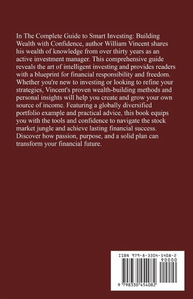 In The Complete Guide to Smart Investing: Building Wealth with Confidence, author William Vincent shares his wealth of knowledge from over thirty years as an active investment manager. This comprehensive guide reveals the art of intelligent investing and provides readers with a blueprint for financial responsibility and freedom. Whether you're new to investing or looking to refine your strategies, Vincent's proven wealth-building methods and personal insights will help you create and grow your own source of income. Featuring a globally diversified portfolio example and practical advice, this book equips you with the tools and confidence to navigate the stock market jungle and achieve lasting financial success. Discover how passion, purpose, and a solid plan can transform your financial future.