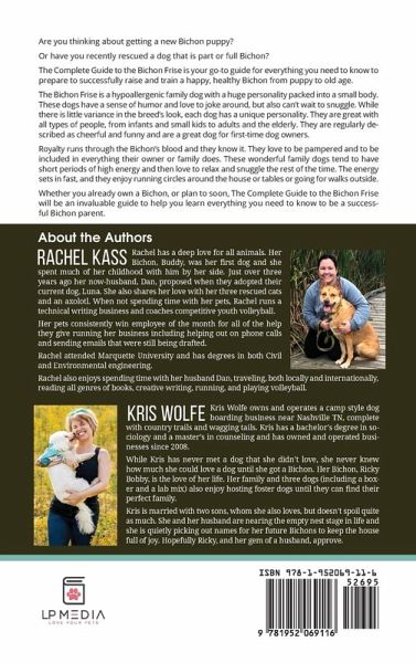 Hardcover version is printed in FULL COLOR! Are you thinking about getting a new Bichon Puppy? Or have you recently rescued a dog that is part, or full Bichon? The Complete Guide to the Bichon Frise is your go-to guide for everything you need to know to prepare to successfully raise and train a happy, healthy Bichon from puppy to old-age. Chapter Topics include:Choosing a Bichon Frise Bringing Home your Bichon Frise Being a Puppy Parent Housetraining Socializing with People and Animals Living with Other Pets Physical and Mental Exercise Training your Bichon Frise Basic Commands Dealing With Unwanted Behaviors Traveling with Bichon Frise Nutrition Grooming your Bichon Frise Basic Health Care Advanced Bichon Frise Health and Aging Dog Care The Bichon Frise is a hypoallergenic family dog with a huge personality packed into a small body. These dogs have a sense of humor, love to joke around, but also can't wait to snuggle. While there is little variance in the breeds look, each dog has a unique personality. They are great with all types of people, from infants and small kids, to adults and the elderly. They are regularly described as cheerful and funny and are a great dog for first-time dog owners. Royalty runs through the Bichon's blood and they know it. They love to be pampered and to be included in everything their owner or family does. These wonderful family dogs tend to have short periods of high energy and then love to relax and snuggle the rest of the time. The energy onsets fast and they enjoy running circles around the house or tables or going for walks outside. Bichon's are comical in their demeanor and their adorable black eyes make them hard to resist. They are friendly, cute, and love to play and do tricks. Kids and adults alike love them for their size, softness, and fun personality. They will integrate themselves into your family from day one and will find a place deep within your heart. Whether you already own a Bichon, or plan to soon, The Complete Guide to the Bichon Frise will be an invaluable guide to help you learn everything you need to know to be a successful Bichon parent.