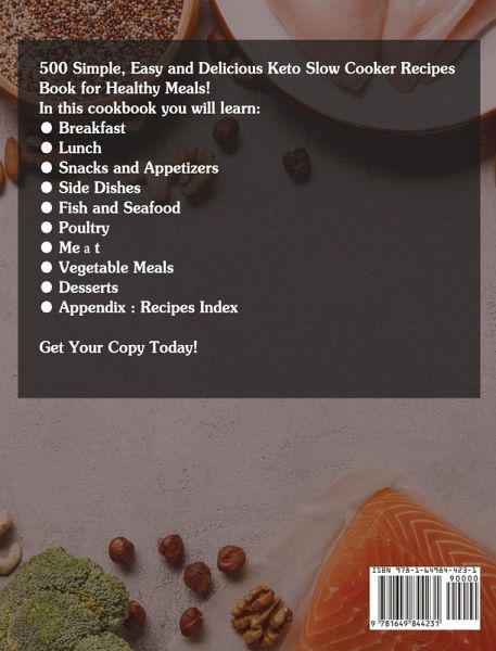 500 Simple, Easy and Delicious Keto Slow Cooker Recipes Book for Healthy Meals! In this cookbook you will learn: ¿ Bre¿kf¿st ¿ Lunch ¿ Sn¿cks ¿nd Appetizers ¿ Side Dishes ¿ Fish ¿nd Se¿food ¿ Poultry ¿ Me¿t ¿ Veget¿ble Me¿ls ¿ Desserts ¿ Appendix : Recipes Index Get Your Copy Today!