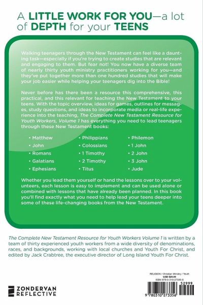 Never before has there been a resource this comprehensive and relevant for teaching the New Testament to your students. With the topic overview, ideas for games, outlines for messages, study questions, and tips for using real-life experiences, you now have everything you need to lead students through more than 100 New Testament lessons.