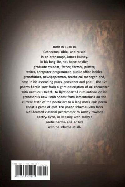 From the Introduction: Just words of course, all just so many words. But words strung slyly, judiciously, and always lovingly one after the other in due order and in such a way as to entertain, sometimes astonish, and, the poet hopes, occasionally enlighten the literate, or even otherwise, reader; all cast in diverse poetical schemes ranging from the formal classical pentameter of Milton or Tennyson to unformed lines to satisfy even the postiest of moderns; but in fact most of the lines herein actually - can it be? - scan, and many - oh no! - even rhyme, sometimes obviously, sometimes merely hinted at in surprising ways, recalling Wallace Stevens's remark that "one writes poetry out of a delight in the harmonious and orderly"; one will find here blank verse, heroic couplets, a touch of ottava rima, numerous sonnets of various styles, even, just for fun, a limerick and a finicky double dactyl; also some rowdy cowboy poetry and other diverse schemes nearly as numerous as the pages herein.