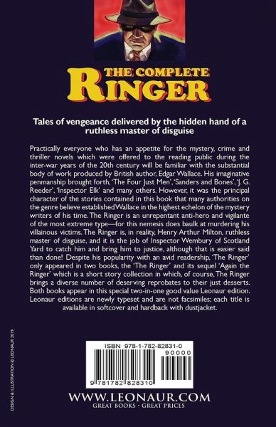 Tales of vengeance delivered by the hidden hand of a ruthless master of disguise Practically everyone who has an appetite for the mystery, crime and thriller novels which were offered to the reading public during the inter-war years of the 20th century will be familiar with the substantial body of work produced by British author, Edgar Wallace. His imaginative penmanship brought forth, ‘The Four Just Men’, ‘Sanders and Bones’, ‘J. G. Reeder’, ‘Inspector Elk’ and many others. However, it was the principal character of the stories contained in this book that many authorities on the genre believe established Wallace in the highest echelon of the mystery writers of his time. The Ringer is an unrepentant anti-hero and vigilante of the most extreme type—for this nemesis does baulk at murdering his villainous victims. The Ringer is, in reality, Henry Arthur Milton, ruthless master of disguise, and it is the job of Inspector Wembury of Scotland Yard to catch him and bring him to justice, although that is easier said than done! Despite his popularity with an avid readership, ‘The Ringer’ only appeared in two books, the ‘The Ringer’ and its sequel ‘Again the Ringer’ which is a short story collection in which, of course, The Ringer brings a diverse number of deserving reprobates to their just desserts. Both books appear in this special two-in-one good value Leonaur edition. Leonaur editions are newly typeset and are not facsimiles; each title is available in softcover and hardback with dustjacket.