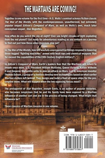 The Martians Are Coming! Together in one volume for the first time—H.G. Wells’s seminal science fiction classic The War of the Worlds, with the contemporaneous, unauthorized, but extremely popular sequel Edison’s Conquest of Mars, as well as Wells’s own, much later conceptual sequel, Star Begotten. How often do you watch the sky at night? Ever see bright streaks of light exploding from the red planet? Get ready for adventurous reading as you embark on a journey to find out just how these alien invasions play out! In The War of the Worlds, how will woefully unprepared Earthlings respond to towering three-legged "fighting machines" armed with heat-rays and chemical weapons that far exceed the capabilities of the19th Century English military? In Edison’s Conquest of Mars, Earth’s leaders fear that the Martians will return to invade once more. U.S. President William McKinley, Queen Victoria, Kaiser Wilhelm II and Emperor Mutsuhito unite to plan an attack on Mars. Led by American inventor Thomas Edison, a group of scientists develop new technologies based on what earlier Martian visitors left behind. They design and build a fleet of space ships for the pre-emptive move. What will happen when the two opposing forces meet? The protagonist of Star Begotten, Joseph Davis, is an author of popular histories, who becomes suspicious that he and his family have been exposed to a Martian influence of another sort and are in the process of being changed. What might that influence be? Three classics of Martian invasion in one volume