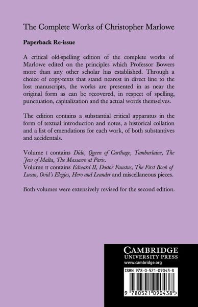 A critical old-spelling edition of the complete works of Marlowe edited on the principles that Professor Bowers more than any other scholar has established.
