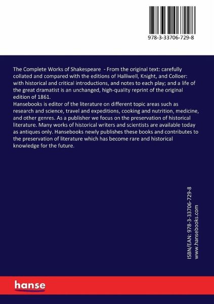 The Complete Works of Shakespeare - From the original text: carefully collated and compared with the editions of Halliwell, Knight, and Colloer: with historical and critical introductions, and notes to each play; and a life of the great dramatist is an unchanged, high-quality reprint of the original edition of 1861.