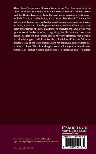 Henry James's experience of drama began in the New York theatres of his 1850s childhood; in Europe he became familiar with the London theatre and the Théâtre-Français in Paris. He went on to experiment continuously with the 'scenic art' in his fiction, and to write plays himself. This complete collection of James's essays and reviews on drama discusses a range of theatre, including productions of Shakespeare, Tennyson, 'well-made' French plays and early performances of Ibsen. In addition, he characterises some of the great performers of the day, including Irving, Terry, Kemble, Ristori, Coquelin and Salvini. Readers will find James's texts as they first appeared, with a wealth of editorial support, which evokes the colourful world of late Victorian theatre. Many of the items included have not previously been available in a scholarly edition. The editorial apparatus includes a general introduction, a chronology, a textual variants section, and a biographical guide to actors.