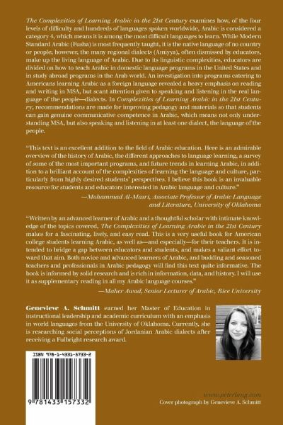 "Written by an advanced learner of Arabic and a thoughtful scholar with intimate knowledge of the topics covered, The Complexities of Learning Arabic in the 21st Century makes for a fascinating, lively, and easy read. This is a very useful book for American college students learning Arabic, as well as-and especially-for their teachers. It is intended to bridge a gap between educators and students, and makes a valiant effort toward that aim. Both novice and advanced learners of Arabic, and budding and seasoned teachers and professionals in Arabic pedagogy will find this text quite informative. The book is informed by solid research and is rich in information, data, and history. I will use it as a supplementary reading in all my Arabic language courses." -Dr. Maher Awad, Senior Lecturer of Arabic, Rice University