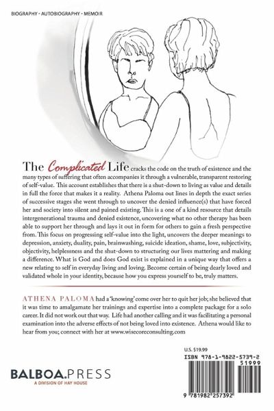 The Complicated Life cracks the code on the truth of existence and the many types of suffering that often accompanies it through a vulnerable, transparent restoring of self-value. This account establishes that there is a shut-down to living as value and details in full the force that makes it a reality. Athena Paloma out lines in depth the exact series of successive stages she went through to uncover the denied influence(s) that have forced her and society into silent and pained existing. This is a one of a kind resource that details intergenerational trauma and denied existence, uncovering what no other therapy has been able to support her through and lays it out in form for others to gain a fresh perspective from. This focus on progressing self-value into the light, uncovers the deeper meanings to depression, anxiety, duality, pain, brainwashing, suicide ideation, shame, love, subjectivity, objectivity, helplessness and the shut-down to structuring our lives mattering and making a difference. What is God and does God exist is explained in a unique way that offers a new relating to self in everyday living and loving. Become certain of being dearly loved and validated whole in your identity, because how you express yourself to be, truly matters.