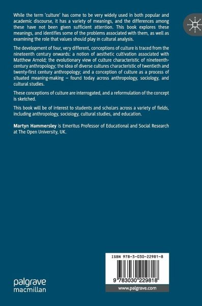 While the term 'culture' has come to be very widely used in both popular and academic discourse, it has a variety of meanings, and the differences among these have not been given sufficient attention. This book explores these meanings, and identifies some of the problems associated with them, as well as examining the role that values should play in cultural analysis.
