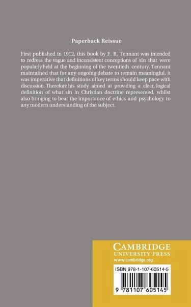 First published in 1912, this book by F. R. Tennant was intended to redress the vague and inconsistent conceptions of sin that were popularly held at the beginning of the twentieth century. Tennant maintained that for any ongoing debate to remain meaningful, it was imperative that definitions of key terms should keep pace with discussion. Therefore his study aimed at providing a clear, logical definition of what sin in Christian doctrine represented, whilst also bringing to bear the importance of ethics and psychology to any modern understanding of the subject.