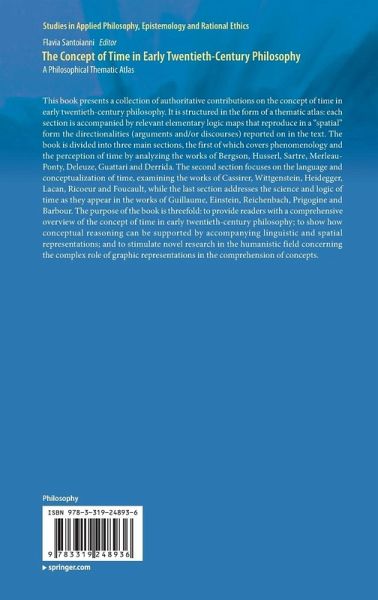 This book presents a collection of authoritative contributions on the concept of time in early twentieth-century philosophy. It is structured in the form of a thematic atlas: each section is accompanied by relevant elementary logic maps that reproduce in a "spatial" form the directionalities (arguments and/or discourses) reported on in the text. The book is divided into three main sections, the first of which covers phenomenology and the perception of time by analyzing the works of Bergson, Husserl, Sartre, Merleau-Ponty, Deleuze, Guattari and Derrida. The second section focuses on the language and conceptualization of time, examining the works of Cassirer, Wittgenstein, Heidegger, Lacan, Ricoeur and Foucault, while the last section addresses the science and logic of time as they appear in the works of Guillaume, Einstein, Reichenbach, Prigogine and Barbour. The purpose of the book is threefold: to provide readers with a comprehensive overview of the concept of time in early twentieth-century philosophy; to show how conceptual reasoning can be supported by accompanying linguistic and spatial representations; and to stimulate novel research in the humanistic field concerning the complex role of graphic representations in the comprehension of concepts.