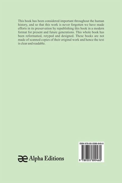 This book has been considered important throughout the human history, and so that this work is never forgotten we have made efforts in its preservation by republishing this book in a modern format for present and future generations. This whole book has been reformatted, retyped and designed. These books are not made of scanned copies and hence the text is clear and readable.