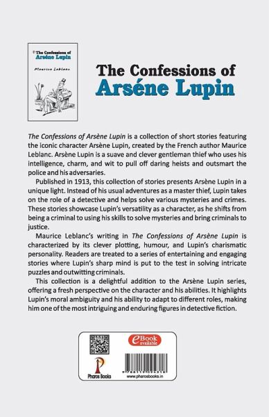 "The Confessions of Arsène Lupin" is a collection of short stories featuring the iconic character Arsène Lupin, created by the French author Maurice Leblanc. Arsène Lupin is a suave and clever gentleman thief who uses his intelligence, charm, and wit to pull off daring heists and outsmart the police and his adversaries. Published in 1913, this collection of stories presents Arsène Lupin in a unique light. Instead of his usual adventures as a master thief, Lupin takes on the role of a detective and helps solve various mysteries and crimes. These stories showcase Lupin's versatility as a character, as he shifts from being a criminal to using his skills to solve mysteries and bring criminals to justice. Maurice Leblanc's writing in "The Confessions of Arsène Lupin" is characterized by its clever plotting, humour, and Lupin's charismatic personality. Readers are treated to a series of entertaining and engaging stories where Lupin's sharp mind is put to the test in solving intricate puzzles and outwitting criminals. This collection is a delightful addition to the Arsène Lupin series, offering a fresh perspective on the character and his abilities. It highlights Lupin's moral ambiguity and his ability to adapt to different roles, making him one of the most intriguing and enduring figures in detective fiction.