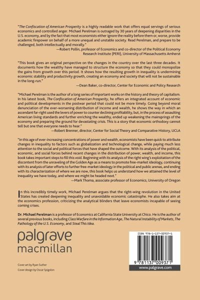 "The Confiscation of American Prosperity is a highly readable work that offers equal servings of serious economics and controlled anger. Michael Perelman is outraged by 30 years of deepening disparities in the U.S. economy, and by the fact most economists either ignore the reality before them or worse, provide academic firepower on behalf of a more unequal and unstable society. Read Perelman, and prepare to be challenged, both intellectually and morally." - Robert Pollin, professor of Economics and co-director of the Political Economy Research Institute (PERI), University of Massachusetts-Amherst
