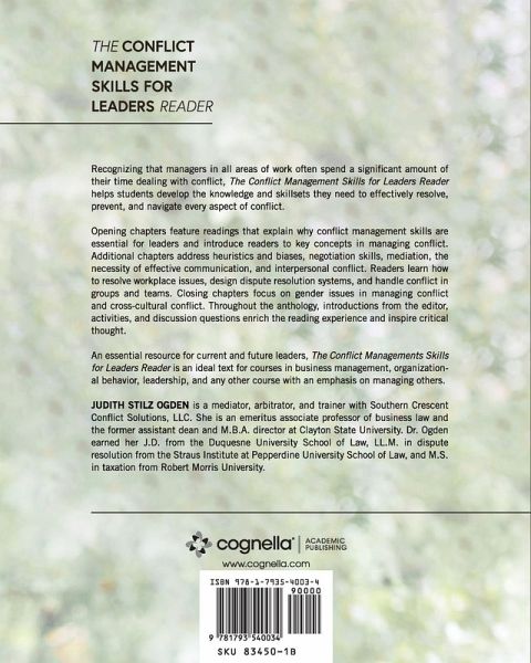 Recognizing that managers in all areas of work often spend a significant amount of their time dealing with conflict, The Conflict Management Skills for Leaders Reader helps students develop the knowledge and skillsets they need to effectively resolve, prevent, and navigate every aspect of conflict. Opening chapters feature readings that explain why conflict management skills are essential for leaders and introduce readers to key concepts in managing conflict. Additional chapters address heuristics and biases, negotiation skills, mediation, the necessity of effective communication, and interpersonal conflict. Readers learn how to resolve workplace issues, design dispute resolution systems, and handle conflict in groups and teams. Closing chapters focus on gender issues in managing conflict and cross-cultural conflict. Throughout the anthology, introductions from the editor, activities, and discussion questions enrich the reading experience and inspire critical thought. An essential resource for current and future leaders, The Conflict Managements Skills for Leaders Reader is an ideal text for courses in business management, organizational behavior, leadership, and any other course with an emphasis on managing others.