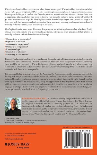 The Conflict Paradox is a guide to taking conflict to a more productive place. Written by one of the founders of the professional conflict management field and co-published with the American Bar Association, this book outlines seven major dilemmas that conflict practitioners face every day. Readers will find expert guidance toward getting to the heart of the conflict and will be challenged to adopt a new way to think about the choices disputants face,. They will also be offered practical tools and techniques for more successful intervention. Using stories, experiences, and reflective exercises to bring these concepts to life, the author provides actionable advice for overcoming roadblocks to effective conflict work.