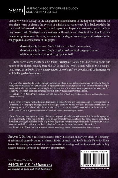 Lesslie Newbigin's concept of the congregation as hermeneutic of the gospel has been used for over thirty years to discuss the overlap of mission and ecclesiology. This book provides the contextual background to the congregation as hermeneutic of the gospel, then discusses the important components of this concept and how they connect with Newbigin's lifetime of writings on the nature and identity of the church. Within this discussion, there are three key elements to Newbigin's ecclesiology as it pertains to the congregation as hermeneutic of the gospel: the relationship between the Holy Spirit and the local congregation, the kingdom of God and the local congregation, and the local congregation within itself. These three components can be found throughout Newbigin's discussions about the nature of the church ranging from the 1940s until the 1990s. Pulling all these components together and showing how they shed light on Newbigin's intended meaning by calling the local congregation the hermeneutic of the gospel for their society provides a new interpretation of this concept that will both strengthen and challenge contemporary uses of this concept within the church today.