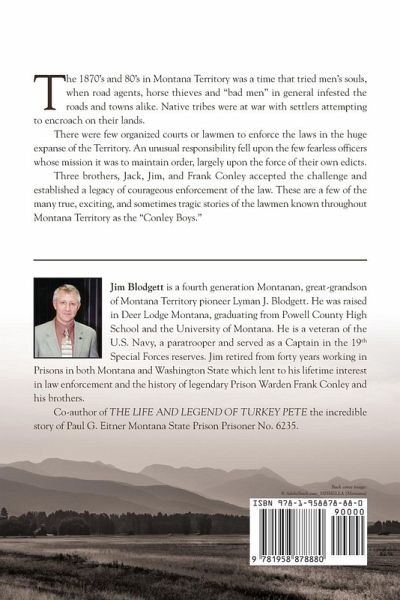 The three Conley boys, Jack, Jim and Frank were sons of an Irish immigrant family, raised along the banks of the Susquehanna River in Maryland. After the death of their father when Frank was but 18 months old, the family relocated to Carroll, Iowa. During the same time, the newspapers were filled with stories of the U.S. Army and their campaigns against the combined native tribes in Montana and the Dakota Territories. The exciting and dangerous stories which celebrated the lives of those involved, was a call to action for all three boys. Montana Territory in the 1870's and 80's was a hostile environment where road agents, horse thieves and "bad men" infested the roads and towns alike. Native tribes were at war with settlers attempting to encroach on their lands, and the advent of the railroad brought a new species of troublemakers to towns along the Northern Pacific route. Other than a rare visit from one of the few U.S. Marshals assigned to the territory; the presence of lawmen was scarce. An unusual responsibility fell upon the few, fearless officers whose mission it was to enforce the law and maintain order, largely upon the force of their own edicts. The job of anyone with a badge, was filled with danger. A lone officer who would attempt to track down a criminal within the huge expanse of the territory, was a fearless man indeed. There were many desperate men who thought little of killing anyone out to bring them to justice. The more efficient and fearless an officer was, the more challenging and dangerous was the job. Legendary lawman Tom Irvine became the first elected sheriff of Custer County which included the town of Miles City. Irvine was the right man for the thriving and wild town, but the awesome and dangerous job of sheriff required deputies with experience, tested courage, and the confidence to handle whatever problem that came their way. Prior to his election as sheriff, Irvine worked alongside Jim and Jack Conley when they served as packers and guides for General Nelson Miles during the Indian wars. Irvine knew of Jack and Jim Conley's capabilities and was successful in recruiting both as his first deputies. Seventeen-year-old Frank had just arrived in Miles City and had always dreamed of working with his brothers, so he approached Irvine for a job. Irvine hesitated as he could not recall a deputy as young as Frank in the territory or any of the surrounding territories. But then again, there had never been brothers quite like the Conley boys. Frank was well over six foot at the time, had broad shoulders, a trim waist, powerful build, a mature manner, and appearance. All three of the brothers, especially Jim, were known as expert marksmen with the pistol, rifle, and shotgun. Jim assured Irvine he would vouch for Frank and be there if needed, to look out for him. Irvine trusted Jim's judgement, "If Frank is half the man, you and Jack are, Jim, I believe he would make an excellent lawman. Besides, there is only one way to find out." Sheriff Irvine was not disappointed, nor were the other lawmen and communities the Conley boys served over the next forty years. Jack and Jim both became effective and respected Sheriff's, stock detectives and U.S. Deputy Marshals. Young Frank became one of the longest serving Prison Wardens and city mayors in the United States. This is a story based upon real events, characters, and the lives of three remarkable brothers and lawmen: Jack, Jim and Frank, The Conley boys of Montana.
