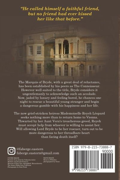 EVER HAD A THING FOR MR. DARCY? Then you'll love meeting THE CONNOISSEUR. This is a hilariously fun Regency romp that'll have you turning the pages long into the night. It is now January 1812. The Marquis of Bryde is reluctantly London's 'Connoisseur'. Feeling bored, he attempts a daring rescue of a beautiful stranger & begins a dangerous gamble with his happiness & her life. Reyeh Léopard, grieving the loss of her parents, just wants to return to Vienna. However her family have other deadly plans for her. She's at a loss to discern if allowing the marquis to rescue her, could be more painful for her heart than facing death itself. If you loved These Old Shades, The Scarlet Pimpernel, or Pride and Prejudice you'll love The Connoisseur. Introducing a marvelously clean Regency Romance for the devoted fans of Jane Austen and Georgette Heyer. Cherish the swooning kisses and the suspense of a death bed rescue, in this soon to be "Classic Gem."