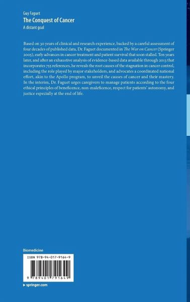 Based on 30 years of clinical and research experience, backed by a careful assessment of four decades of published data, Dr. Faguet documented in The War on Cancer (Springer 2005), early advances in cancer treatment and patient survival that soon stalled. Ten years later and after an exhaustive analysis of evidence-based data available through 2013 that incorporates 755 references, he reveals the root causes of the stagnation in cancer control, including the role played by major stakeholders and advocates a coordinated national effort, akin to the Apollo program, to unveil the causes of cancer and their mastery. In the interim, Dr. Faguet urges caregivers to manage patients according to the four ethical principles of beneficence, non-maleficence, respect for patients' autonomy and justice especially at the end of life.