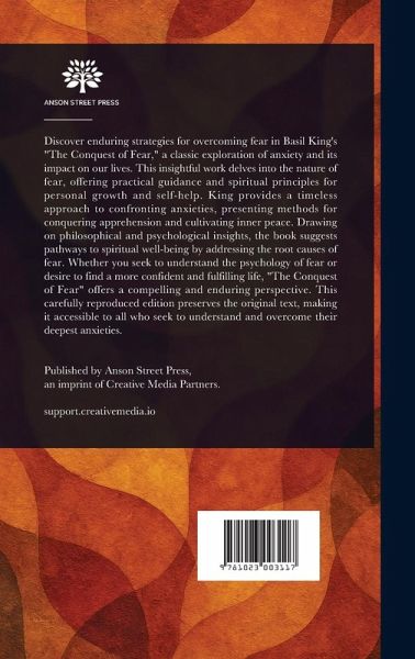 Discover enduring strategies for overcoming fear in Basil King's "The Conquest of Fear," a classic exploration of anxiety and its impact on our lives. This insightful work delves into the nature of fear, offering practical guidance and spiritual principles for personal growth and self-help. King provides a timeless approach to confronting anxieties, presenting methods for conquering apprehension and cultivating inner peace. Drawing on philosophical and psychological insights, the book suggests pathways to spiritual well-being by addressing the root causes of fear. Whether you seek to understand the psychology of fear or desire to find a more confident and fulfilling life, "The Conquest of Fear" offers a compelling and enduring perspective. This carefully reproduced edition preserves the original text, making it accessible to all who seek to understand and overcome their deepest anxieties. This work has been selected by scholars as being culturally important, and is part of the knowledge base of civilization as we know it. This work is in the public domain in the United States of America, and possibly other nations. Within the United States, you may freely copy and distribute this work, as no entity (individual or corporate) has a copyright on the body of the work. Scholars believe, and we concur, that this work is important enough to be preserved, reproduced, and made generally available to the public. We appreciate your support of the preservation process, and thank you for being an important part of keeping this knowledge alive and relevant.