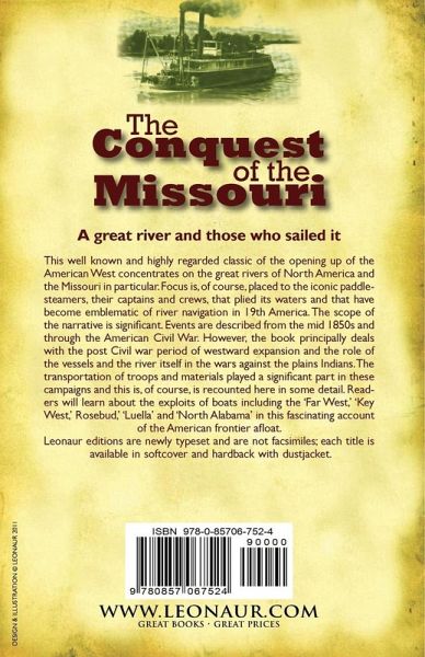 A great river and those who sailed it This well known and highly regarded classic of the opening up of the American West concentrates on the great rivers of North America and the Missouri in particular. Focus is, of course, placed to the iconic paddle-steamers, their captains and crews, that plied its waters and that have become emblematic of river navigation in 19th century America. The scope of the narrative is significant. Events are described from the mid 1850s and through the American Civil War. However, the book principally deals with the post Civil war period of westward expansion and the role of the vessels and the river itself in the wars against the plains Indians. The transportation of troops and materials played a significant part in these campaigns and this is, of course, is recounted here in some detail. Readers will learn about the exploits of boats including the 'Far West,' 'Key West,' Rosebud,' 'Luella' and 'North Alabama' in this fascinating account of the American frontier afloat. Leonaur editions are newly typeset and are not facsimiles; each title is available in softcover and hardback with dustjacket.