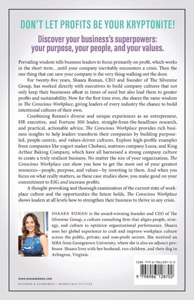 Don't let profits be your kryptonite! ¿¿Discover your business's superpowers: your purpose, your people, and your values. Prevailing wisdom tells business leaders to focus primarily on profit, which works in the short term...until your company inevitably encounters a crisis. Then the one thing that can save your company is the very thing walking out the door. For twenty-five years, Shaara Roman, CEO and founder of The Silverene Group, has worked directly with executives to build company cultures that not only keep their businesses afloat in times of need but also lead them to greater profits and sustainability. Now for the first time ever, she shares the same wisdom in The Conscious Workplace, giving leaders of every industry the chance to build intentional cultures of their own. Combining Roman's diverse and unique experiences as an entrepreneur, HR executive, and Fortune 500 leader, straight-from-the-headlines research, and practical, actionable advice, The Conscious Workplace provides rich business insights to help leaders transform their companies by building purpose-led, people-centric, and values-driven cultures. Explore high-profile examples from companies like yogurt maker Chobani, mattress company Leesa, and King Arthur Baking Company, which have all harnessed a strong company culture to create a truly resilient business. No matter the size of your organization, The Conscious Workplace can show you how to get the most out of your greatest resources-people, purpose, and values-by investing in them. And when you focus on what really matters, as these case studies show, you make good on your commitment to ESG and increase profits. A thought-provoking and thorough examination of the current state of workplace culture and the opportunities the future holds, The Conscious Workplace shows leaders at all levels how to strengthen their business to thrive in any crisis.
